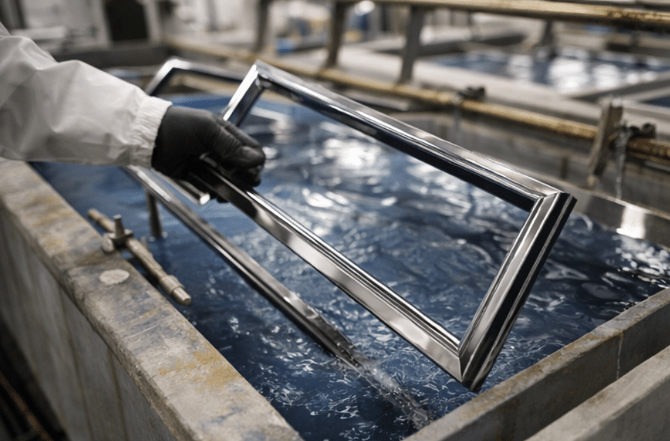 La cromatura conferisce alle superfici un effetto specchiato e altamente riflettente.
